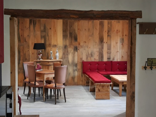 Entièrement rénovée, cette ancienne ferme familiale, à 850m d'altitude, se trouve à 50m de la ferme de vaches laitières en AOP Fourme de Montbrison, du Parcours Pieds Nus avec sa mini-ferme et à 2 km du village de Saint-Georges-en-Couzan.
