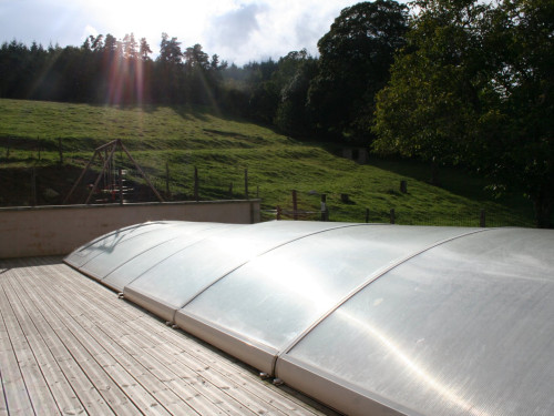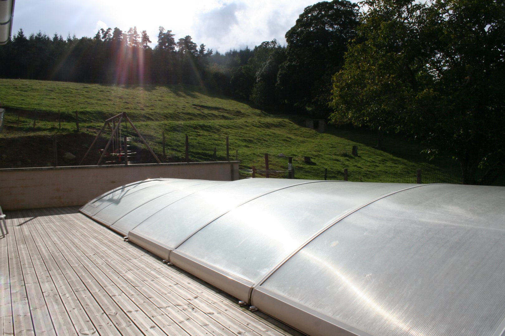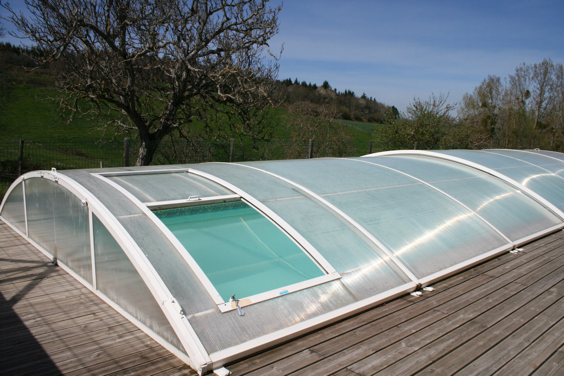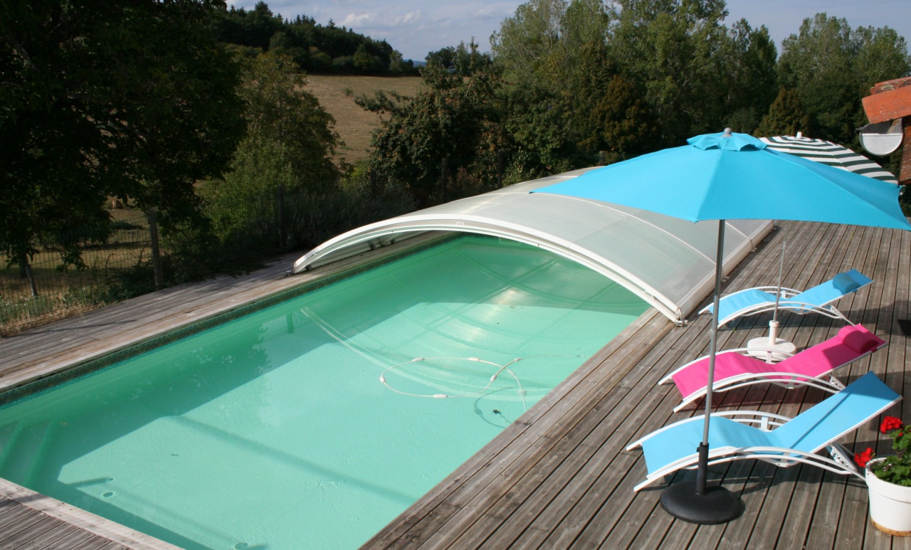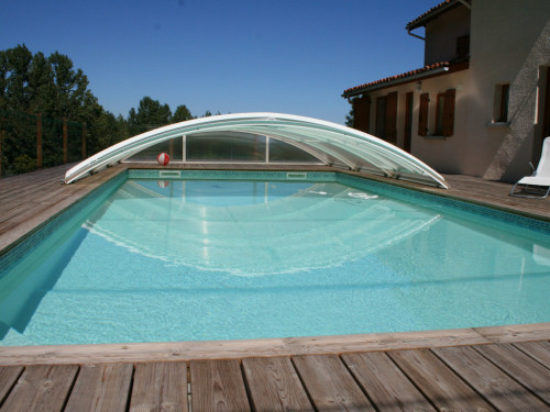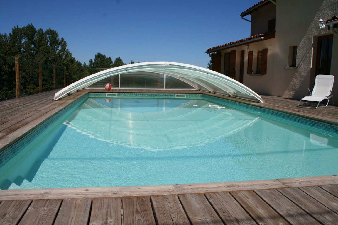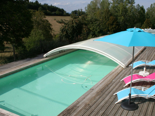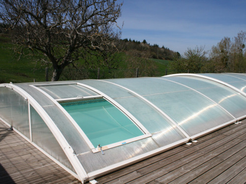 Couverte par un abri bas coulissant, possibilité de se baigner sous l'abri.