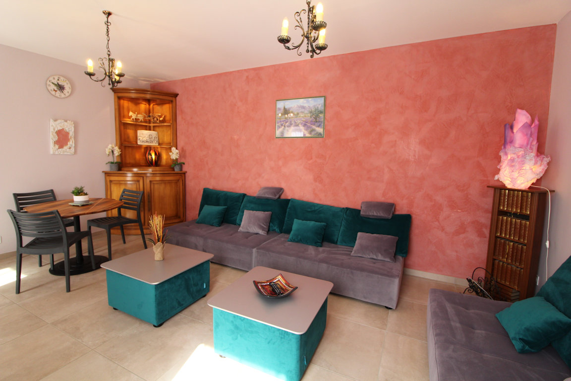 Le salon avec 3 canapés pour vous détendre avec télévision et Wifi.