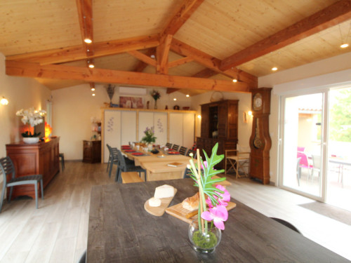 Un grand séjour, cuisine hors norme ou la convivialité est au rendez-vous une décoration très apaisante et lumineuse de 45 m² climatisé, chauffage au sol donnant sur une grande terrasse de 40 m² où vous pourrez profitez du soleil avec salons de jardin et coin repas et sa plancha.