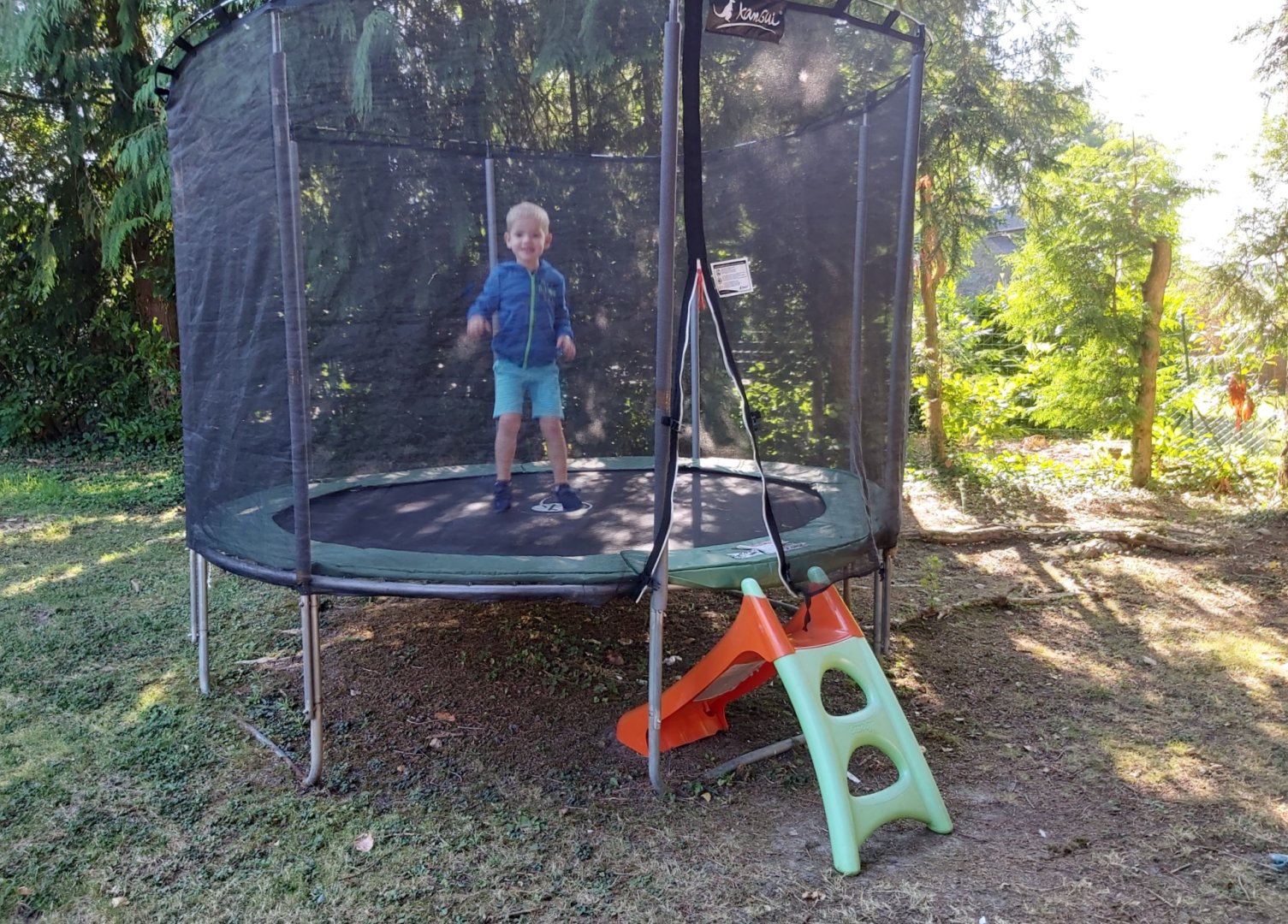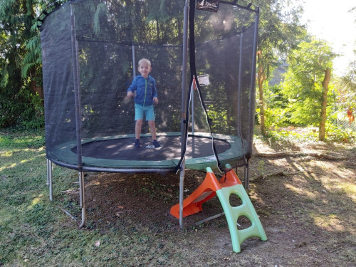 les enfants ont à leur disposition une petite aire de jeux, jouets, balançoire et trampoline (en l'état)