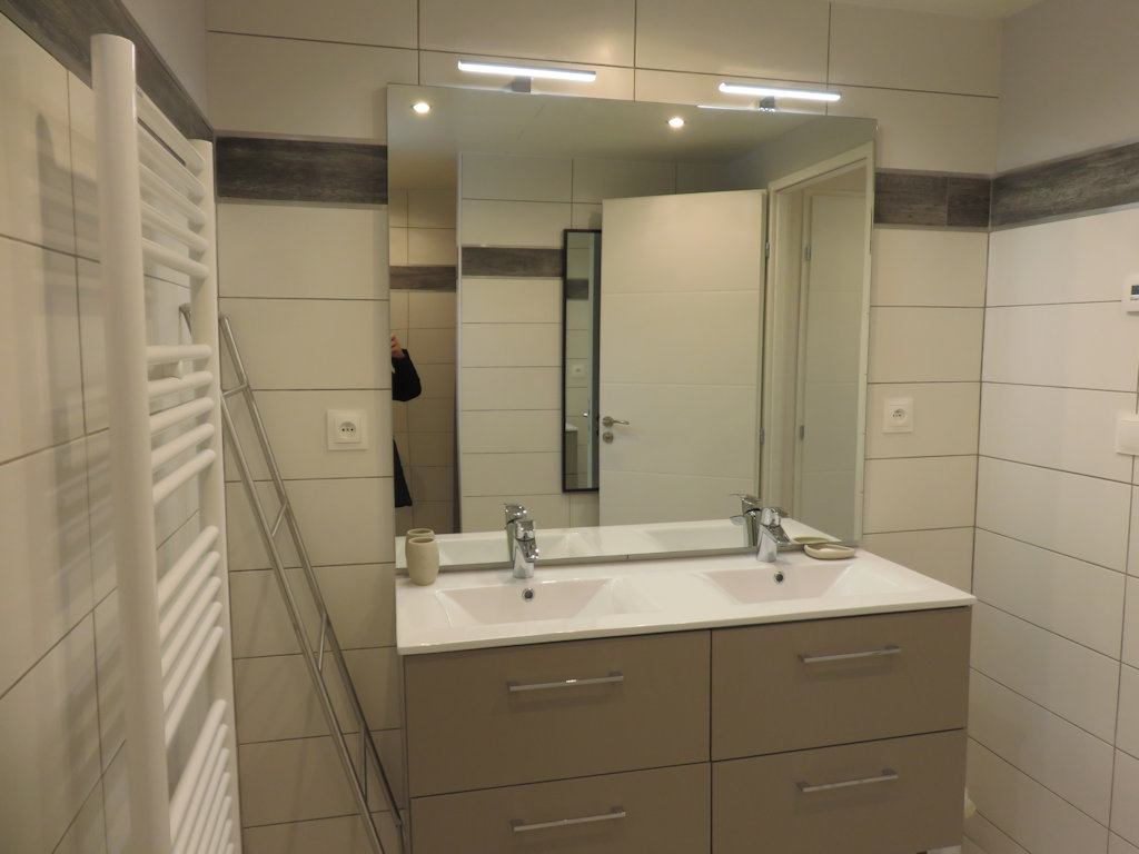 Douche à l'italienne, Vasque, Sèche-cheveux, Sèche-serviettes