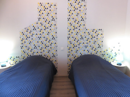 • l'étage est composé de 2 chambres (1 lit de 160 et 2 lits de 90) et d'un WC