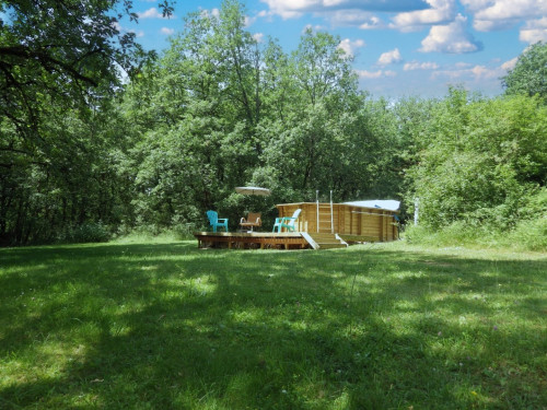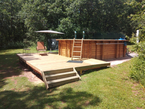 Dans le jardin il y a une piscine hors-sol de 6 x 4 m avec terrasse et une table de pique-nique pour 8 personnes. Il y a aussi des transats, des hamacs, et des jeux.
