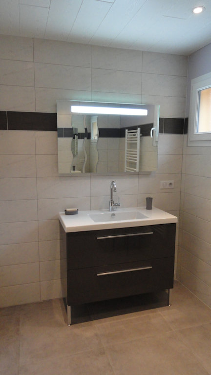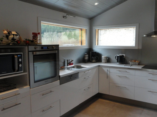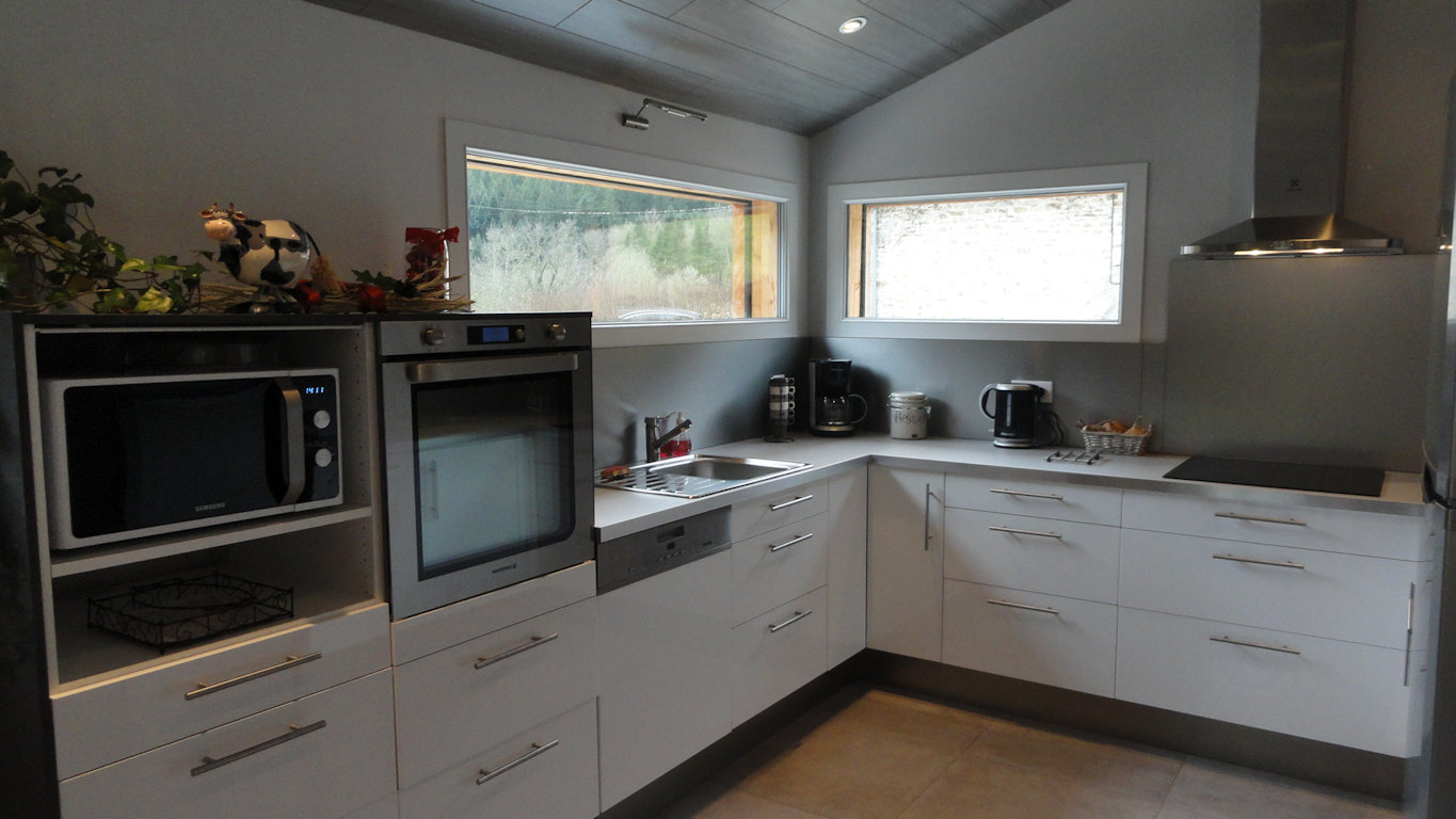 Il est tout équipé : lave-linge, lave-vaisselle, four + micro-ondes, machine à pain, réfrigérateur-congélateur, plaque induction, cafetière électrique + Senseo, télévision, Hi-Fi, Wifi par la Fibre…