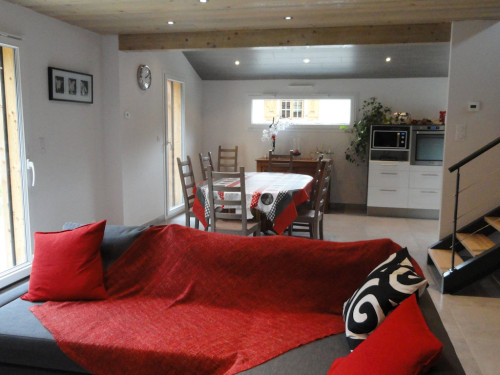 Il se compose d'un grand séjour-salon avec cuisine ultra équipée, de 2 salles de bain avec douche, 2 WC, une buanderie, trois chambres (1 lit 160, 1 lit 140, 2 lits de 90), un grand salon avec deux clic-clac tout confort, un garage fermé + parking.