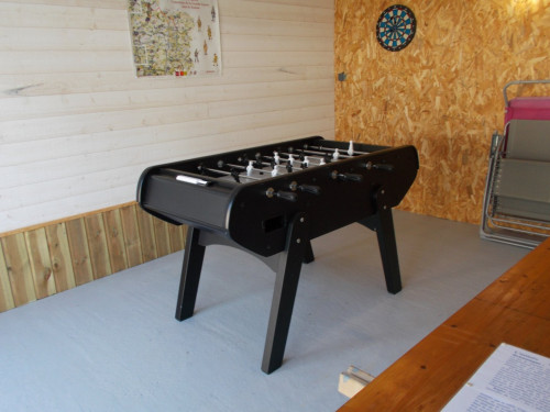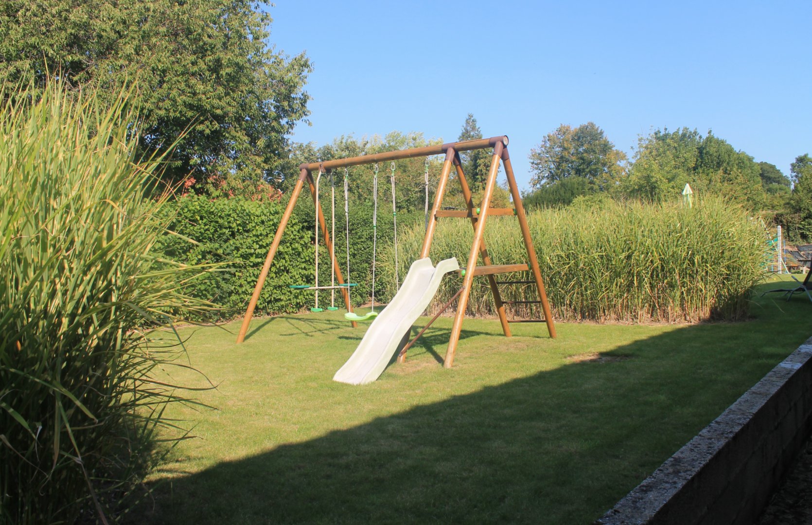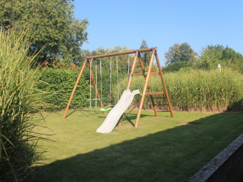 Terrasse couverte (12 m²), jardin sur l'arrière avec portique pour enfants, local fermé pour vélos, salle de jeux (baby-foot, fléchettes, jeux d'assiettes), cour privée fermée.