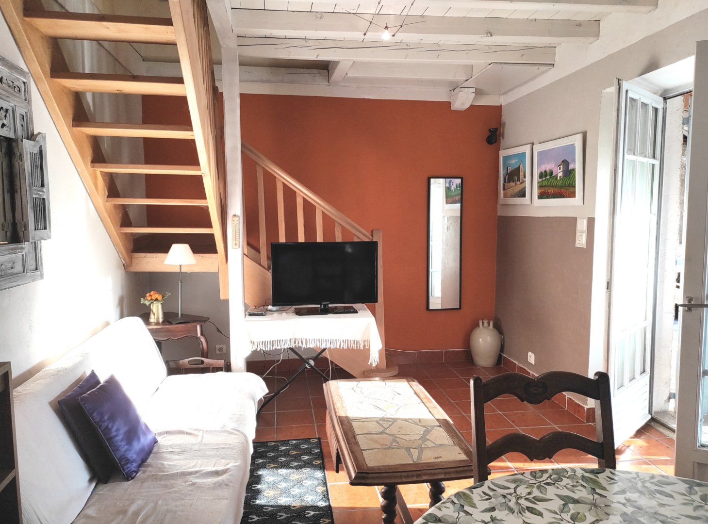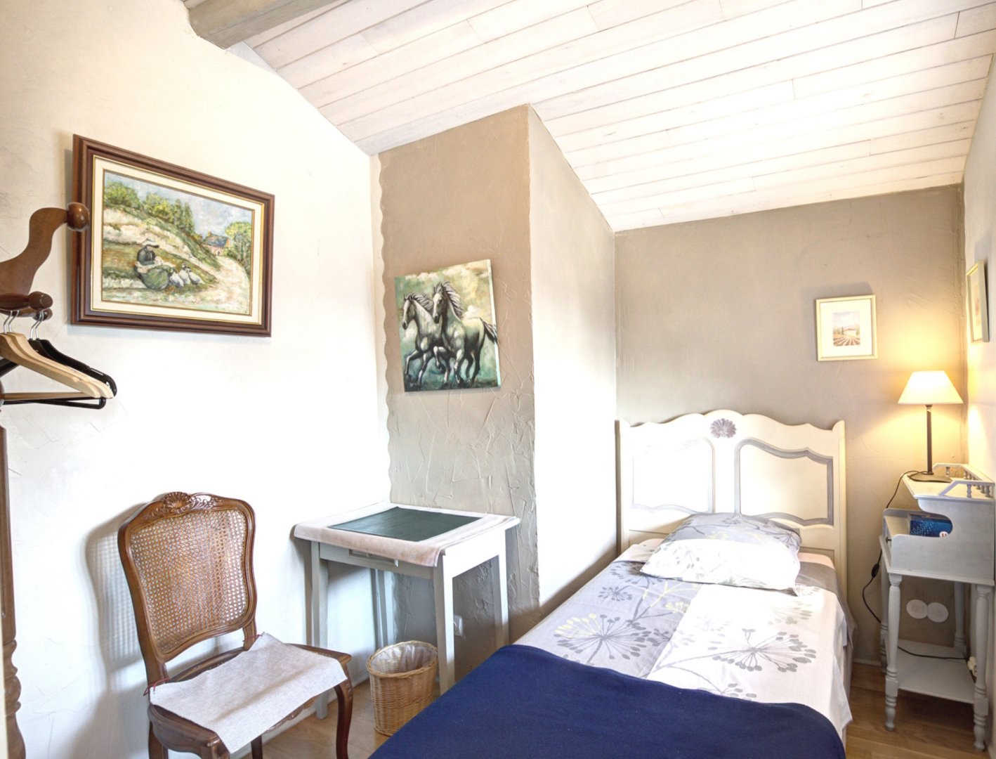 Duplex indépendant contigu à la maison des propriétaires avec à l'étage 3 chambres indépendantes, et une salle de bains avec douche (80x120) lavabo et toilettes, sèche serviette, sèche cheveux.