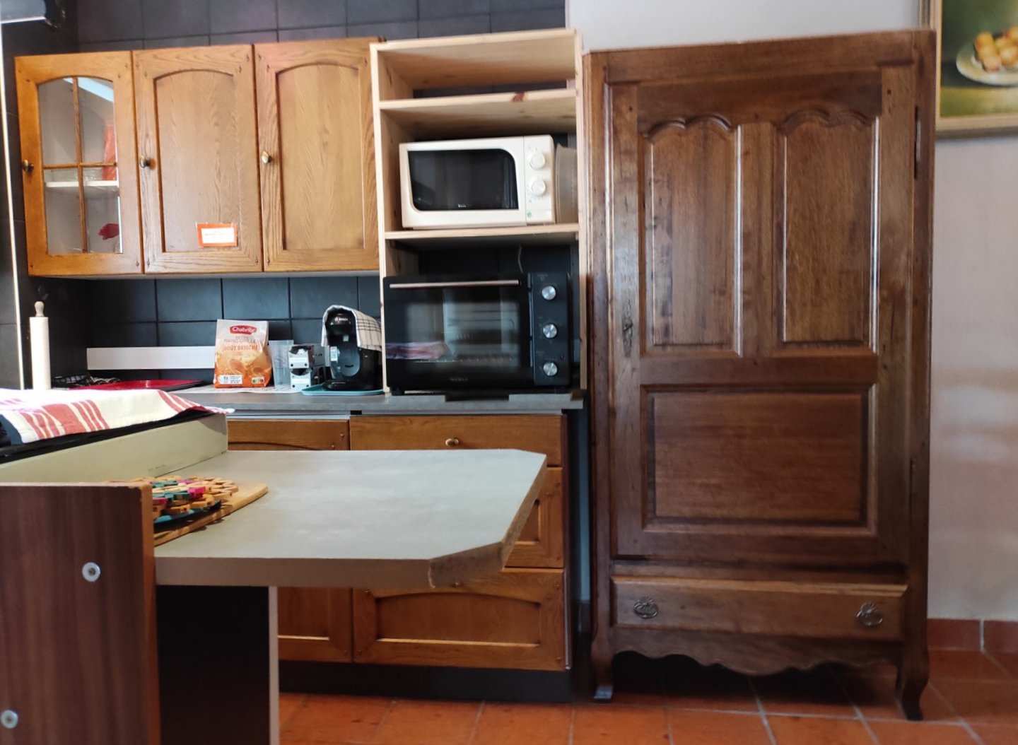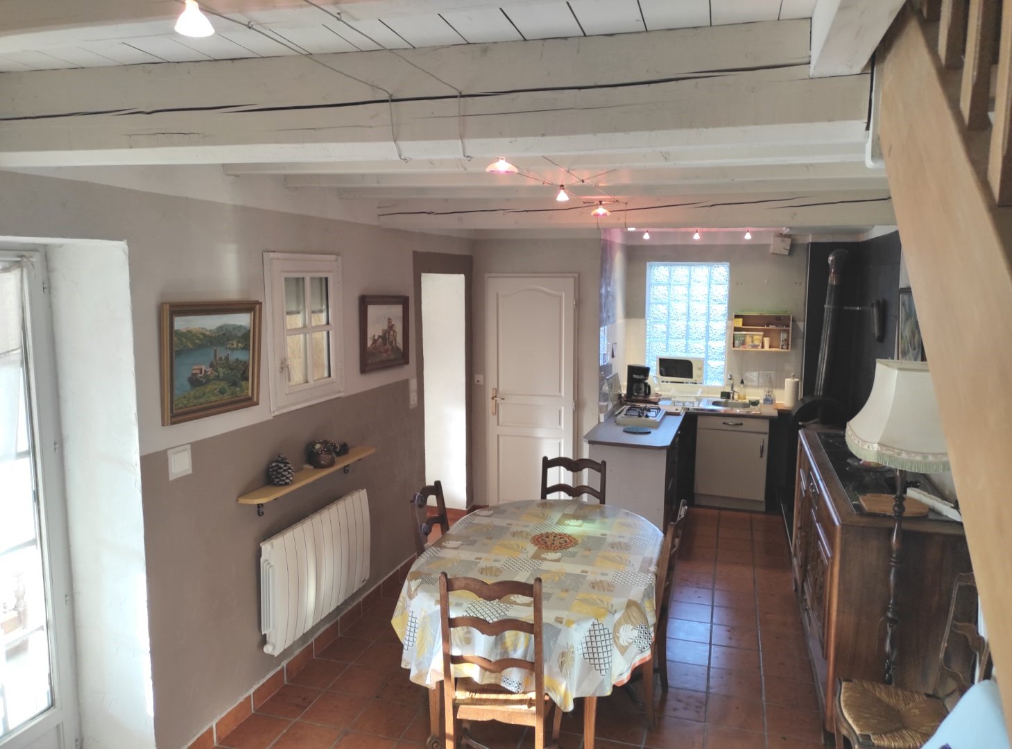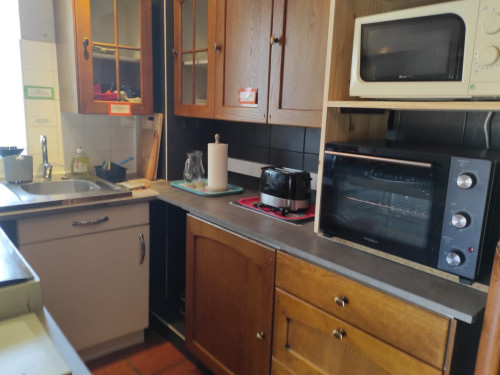 Au rez-de-chaussée : une entrée indépendante, vestiaire, WC, puis un espace cuisine (4plaques de cuisson, ustensiles de cuisine, vaisselle, four, four micro onde, machine à lave , cafetière, bouilloire grille pain, fer et planche à repasser) salle à manger, salon canapé TV Wi-Fi. Nécessaire bébé