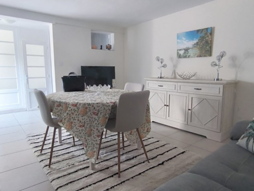 Ce gîte conçu pour 2 personnes dispose au rez-de-chaussée d’un séjour/salle à manger avec TV et d’une cuisine aménagée, équipée, avec lave-vaisselle, four et four micro-ondes, etc., ainsi que d’un toilette avec lave-mains.