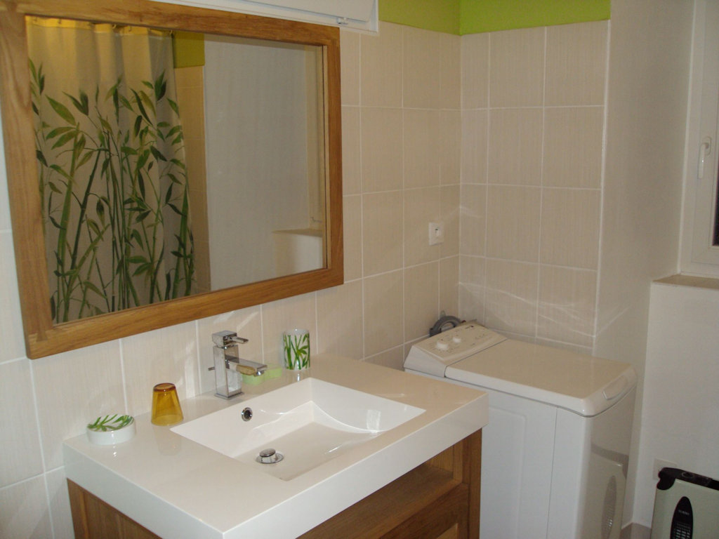 Salle de bains 1 : Douche, Lavabo, Sèche-cheveux