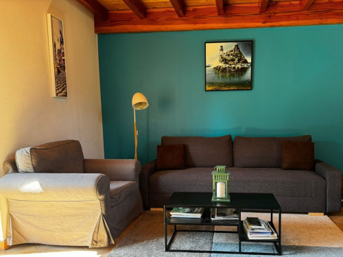 Vous trouverez au rez-de-chaussée qui est sur plusieurs niveaux (un ou deux marches pour accéder aux différentes pièces) :