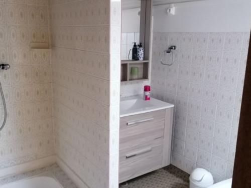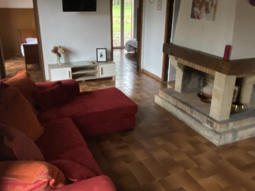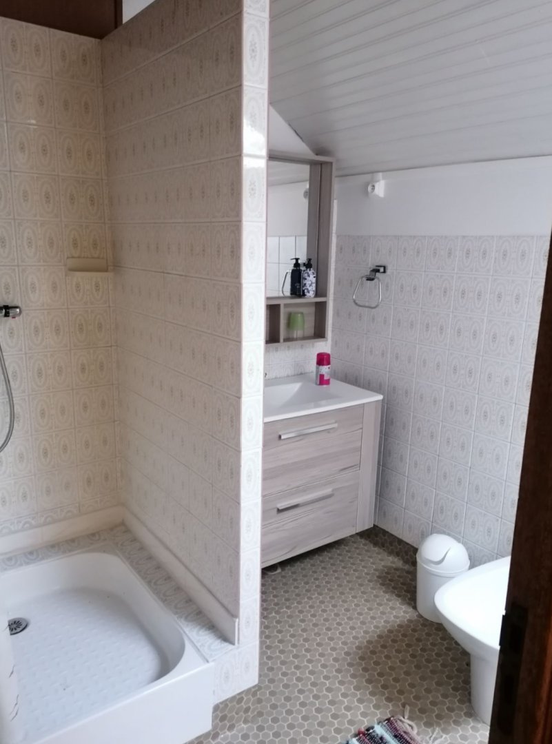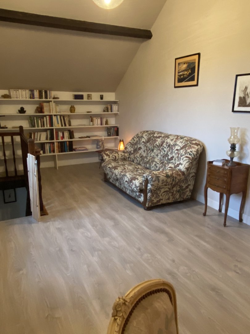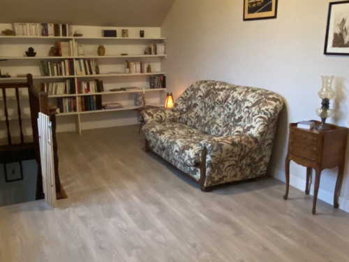 • à l'étage : un coin bibliothèque s'ouvre sur un couloir desservant 2 chambres avec pour l'une un lit de 180 cm et pour l'autre un lit de 160 cm et enfin, une salle de douche avec WC. De nombreux placards de rangement sont à disposition.