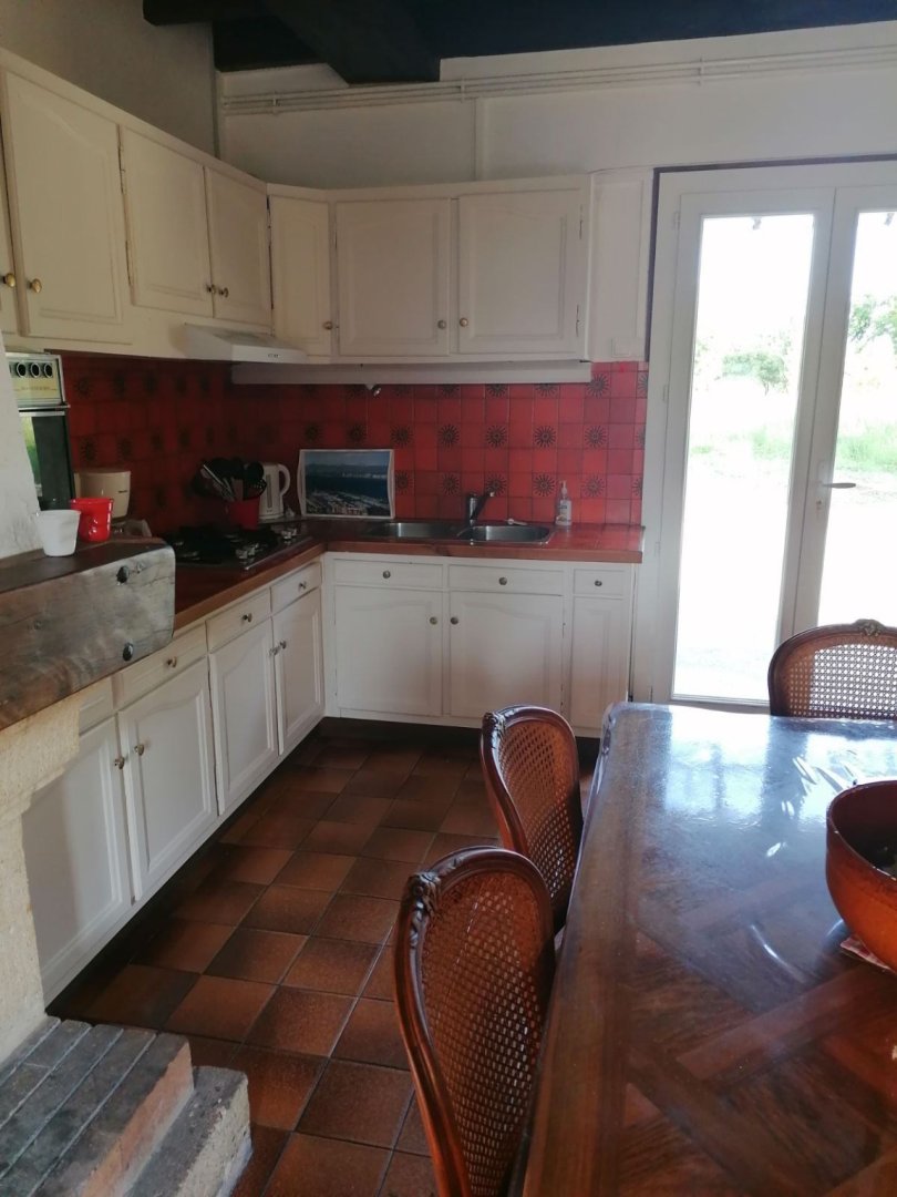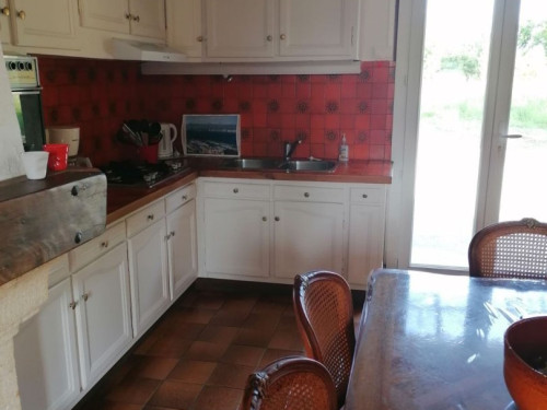 La cuisine est équipée d'un frigo-congélateur, d'une plaque gaz, d'un four traditionnel, d'un micro-ondes et d'une machine à café.