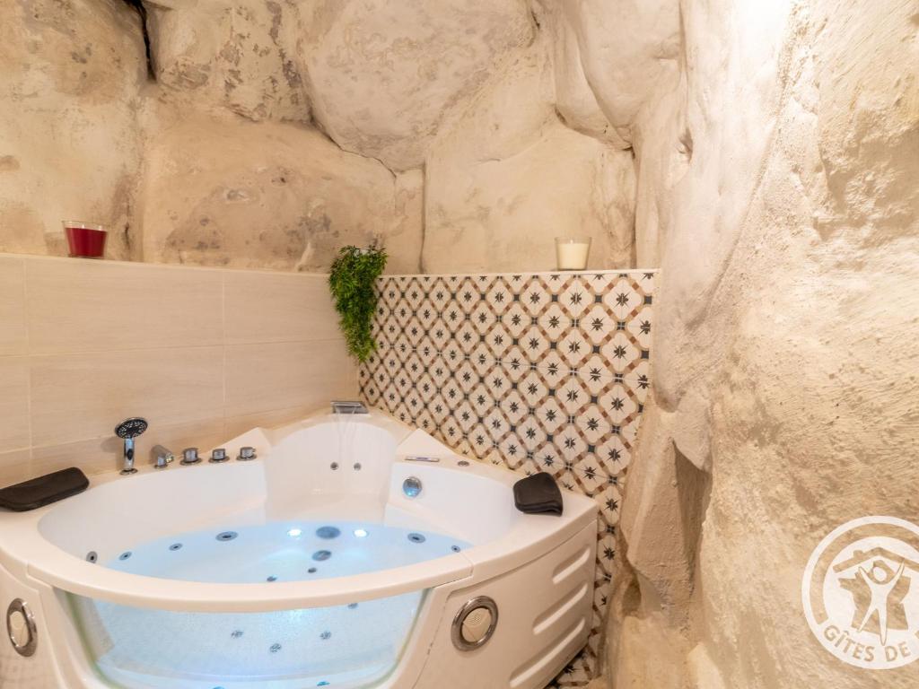 Proposant un jardin et offrant une vue sur le jardin, l’hébergement Gîte troglodyte unique avec spa, billard et jardin, près de Doué La Fontaine et Saumur - FR-1-622-69 se situe à Les Ulmes, à respectivement 13 km et 26 km de ces lieux d’intérêt : Gare de Saumur et Château de Montsoreau. Cet hébergement met à votre disposition une terrasse, un billard, un parking privé gratuit et une connexion Wi-Fi gratuite.