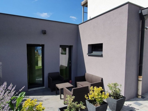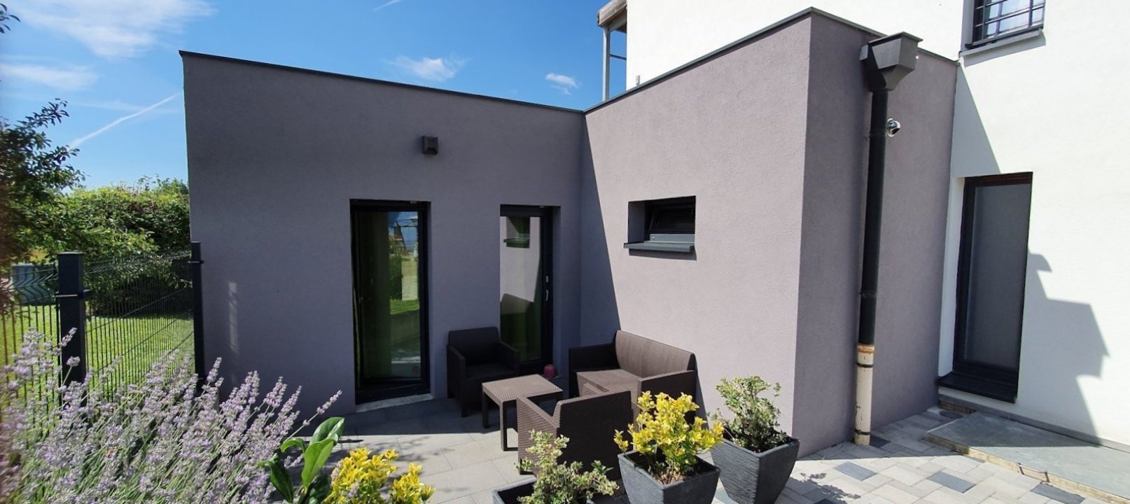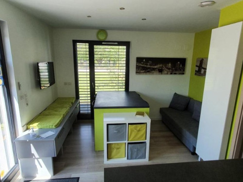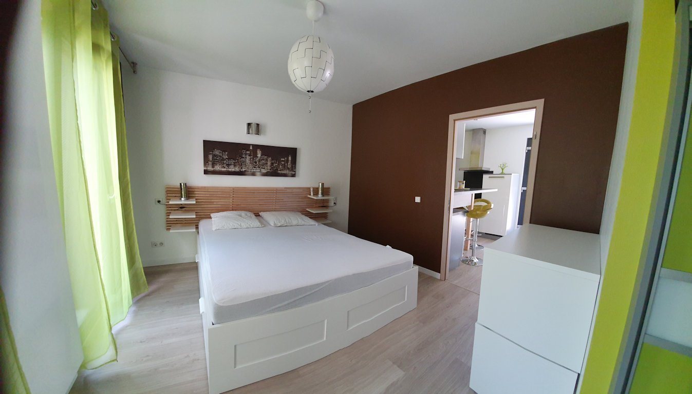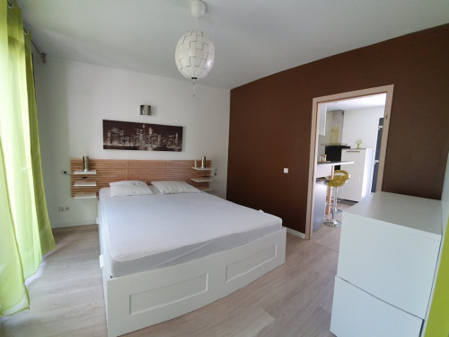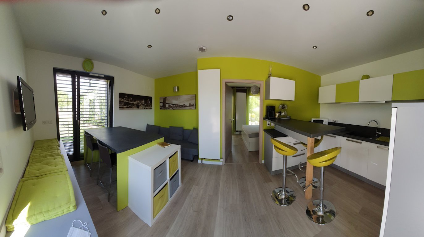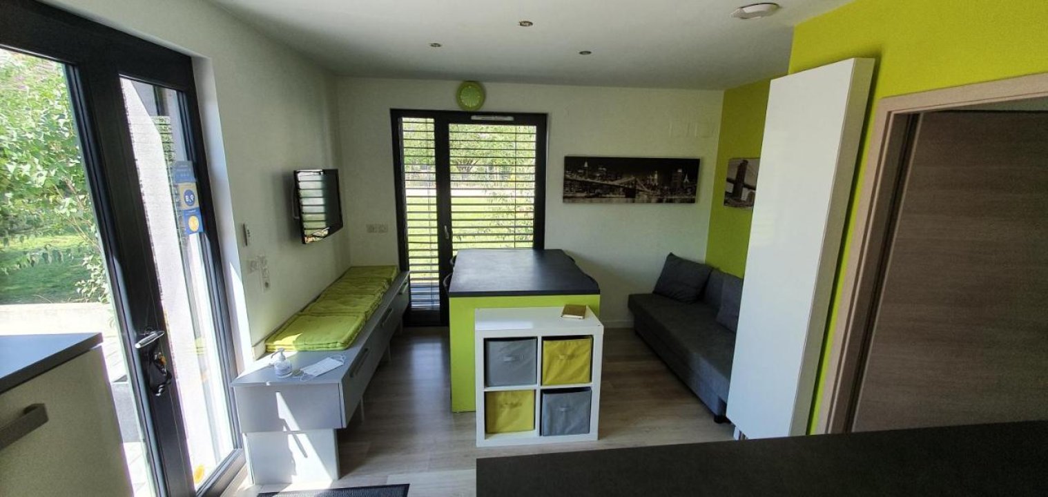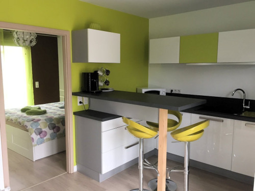 Joli appartement meublé, neuf et lumineux de 40 m², de plain-pied au cœur de la plaine d'Alsace, à Holtzwihr, pouvant accueillir 2 adultes et 1 enfant.