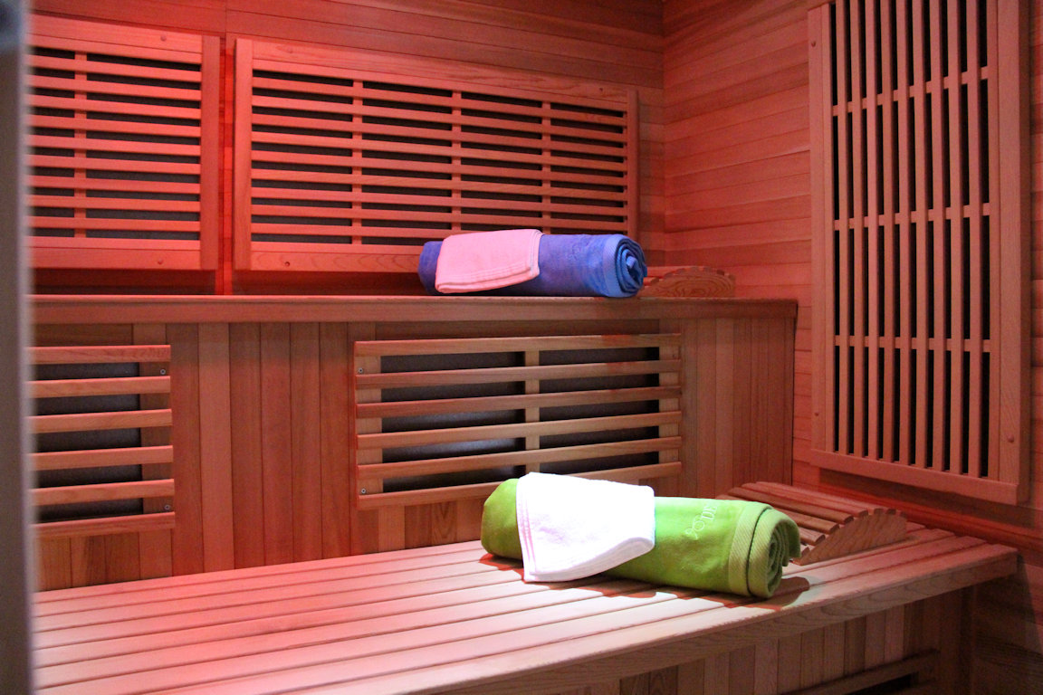 Espace bien être privatisé avec sauna & spa réservation sur planning (fourniture peignoirs, tongs, serviettes, boissons, vestiaire douche & WC sur place)