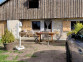 Terrain de boules, salon de jardin et bain de soleil.