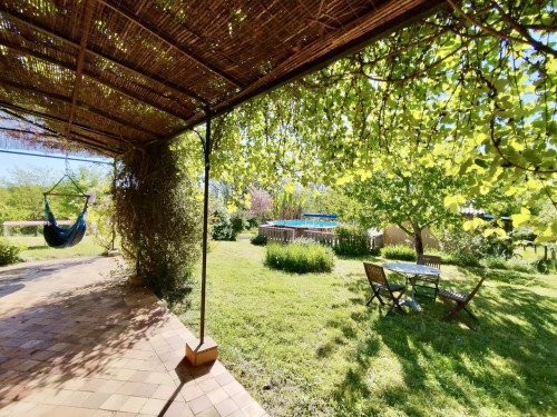 Cet endroit chaleureux est conçu pour des vacances reposantes, dépaysantes au cœur d'une nature inspirante. Un agréable jardin fleuri et arboré de près de 3000 m², entièrement clos (nos chers enfants et nos amis à quatre pattes ne peuvent pas le quitter) est un refuge de détente et de bien-être. Un portique, une petite table de ping-pong, un hamac et deux chaises suspendues vous y attendent. Parfaitement intégrée dans le paysage, la piscine chauffée (6x4 mètres - ouverte d'avril à fin octobre), totalement privative, est un autre lieu de convivialité et de farniente.