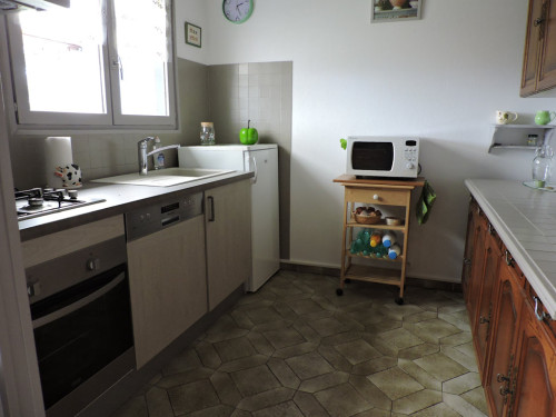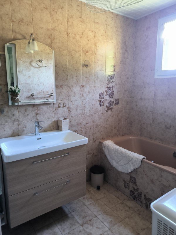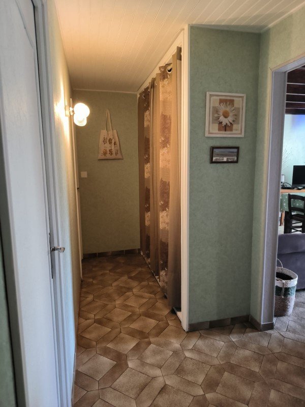 Entrée direct du garage bétonné (2 voitures- idéal motos) situé au rez-de-chaussée avec balcon-véranda dans l'entrée, accès jardin (clos) à partir de la véranda.