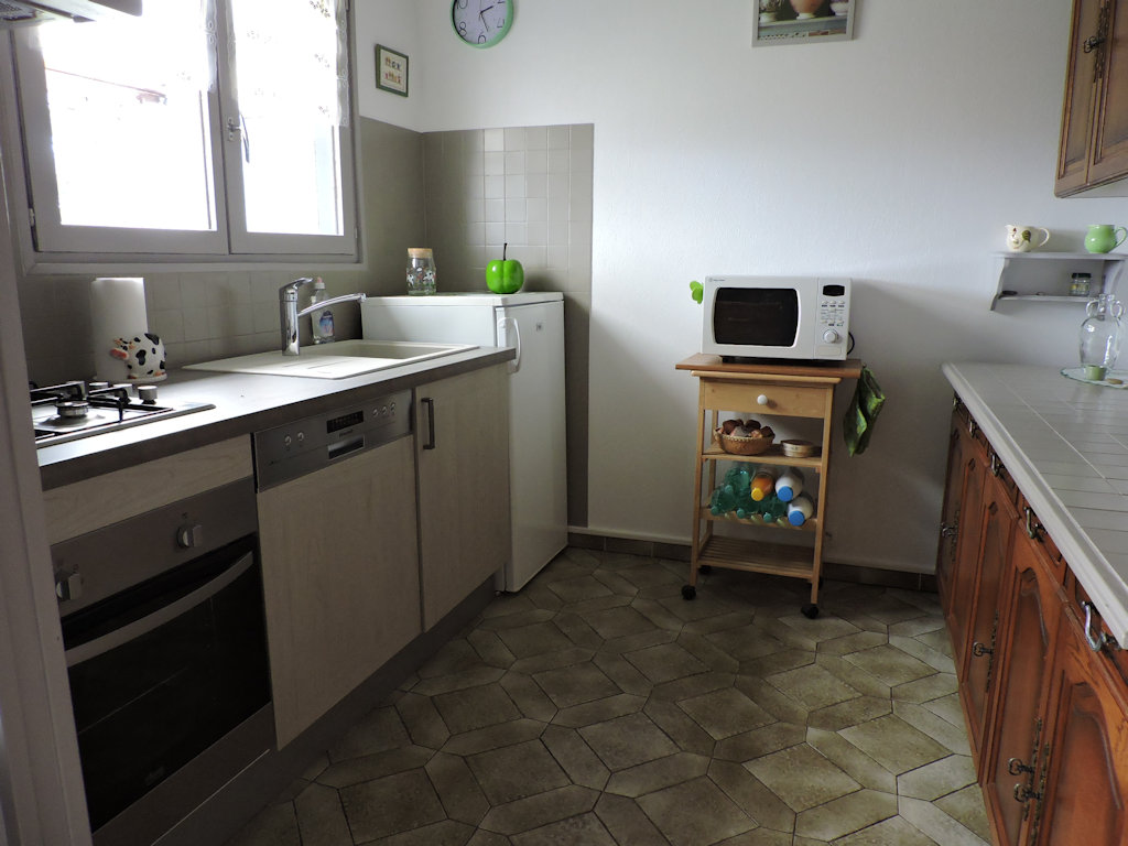 Salon séjour 30 m² (TV) avec balcon véranda, cuisine ouverte équipée (lave-linge, lave-vaisselle)