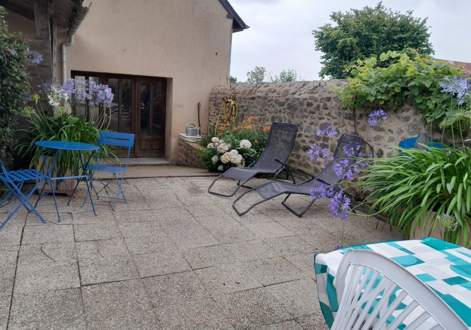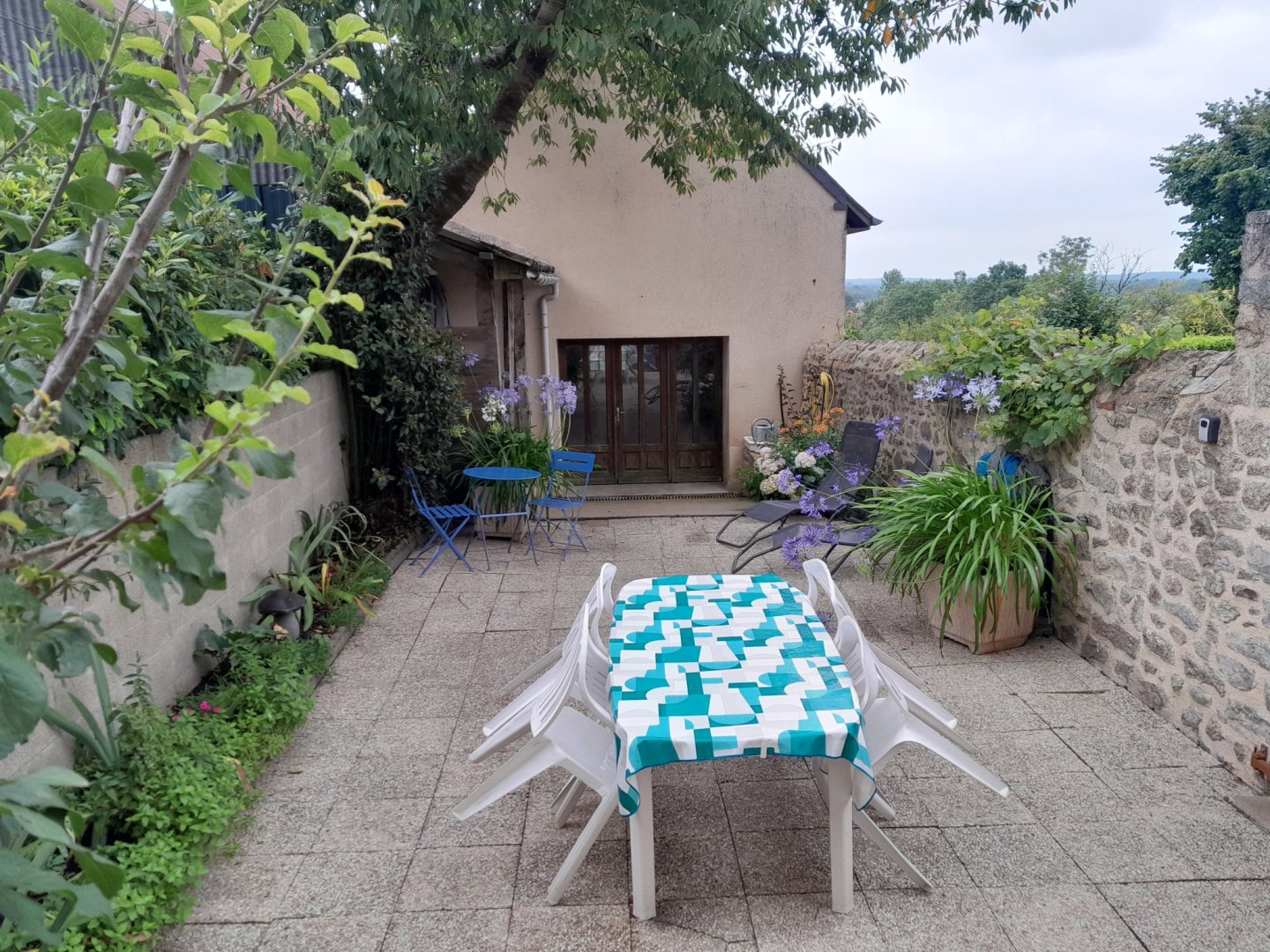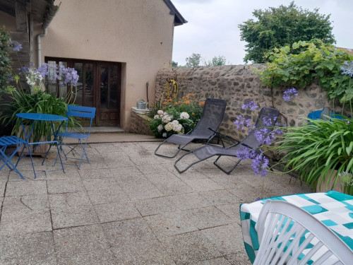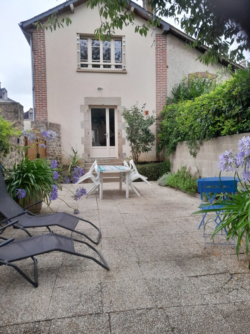 L'hébergement donne sur une cour entièrement fermée avec salon de jardin et barbecue