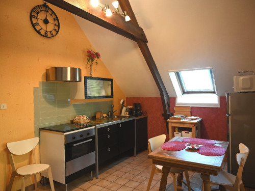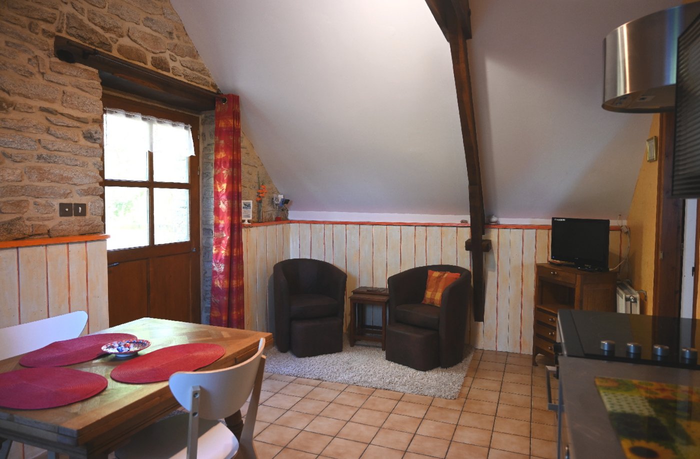 À l'étage, par un escalier extérieur, vous accéderez au "Nautilus", charme douillet des espaces sous combles aux poutres anciennes.