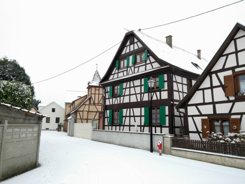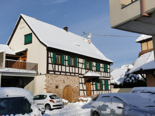Maison alsacienne traditionnelle de charme entièrement rénovée, indépendante, située dans un corps de ferme, aménagée sur 2 niveaux dans un village en centre Alsace à mi-chemin entre Strasbourg et Colmar, proche de la Route des Vins, d'Europa Park et de tous les hauts lieux touristiques de la région.