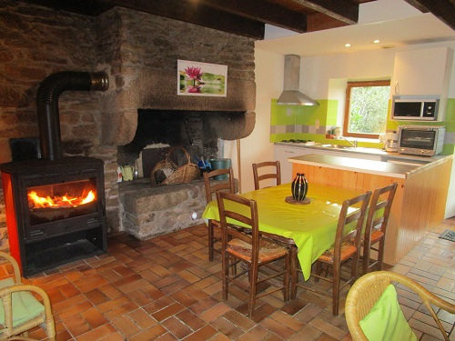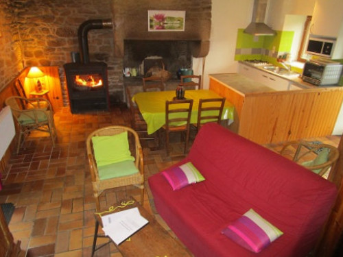 Au rez-de-chaussée, vous avez le salon avec 1 poêle à bois pour les soirées d'hiver, la cuisine équipée et la salle d'eau et 1 WC.