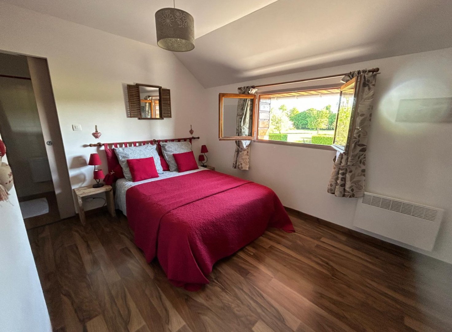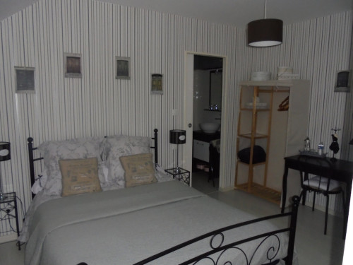 🔹️une chambre " côté campagne "avec 1 lit 2 pers. et 1 coin bébé (lit bébé et matériel à disposition), (salle d'eau et WC).