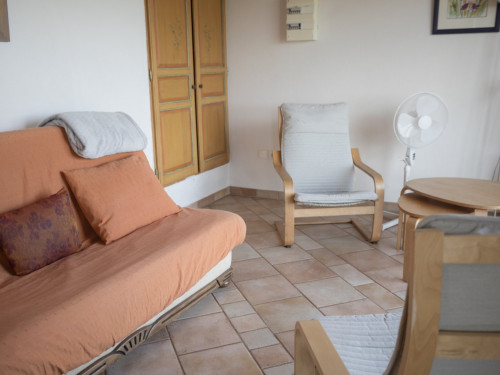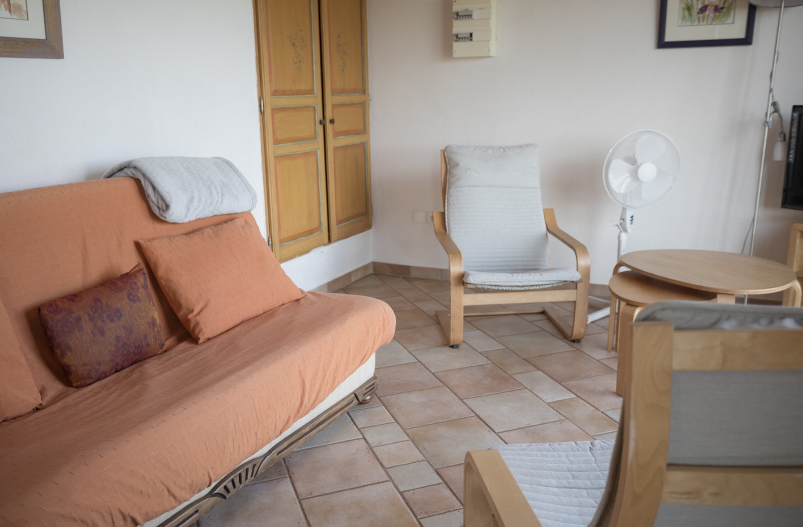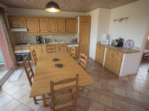 - 1 salle de séjour, avec 2 grandes baies vitrées, avec clic-clac 2 pers., 2 fauteuils, TV écran plat 81 cm, vaisselle de qualité en quantité, cuisine équipée, avec lave-vaisselle, très grand frigo congélation, four, lave-linge, machine à café expresso (compatible Senseo) et filtre, grille pain et micro-ondes.