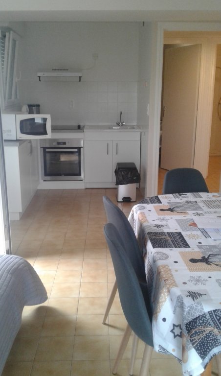 Le coin cuisine est équipé d'une plaque vitro, d'un four électrique, d'un micro-ondes, d'un réfrigérateur, d'une cafetière, d'un grille-pain, d'une bouilloire ainsi que d'une machine à laver le linge et lave vaisselle.