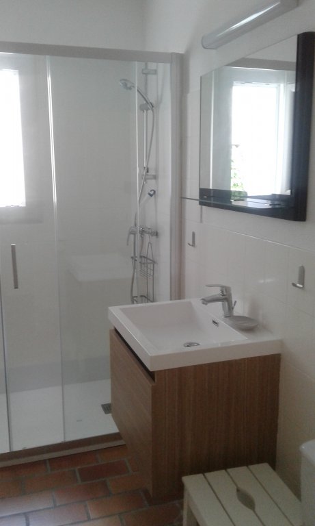 Le gite est composé d’un salon salle à manger, très agréable, avec une grande table, un canapé, une télévision.