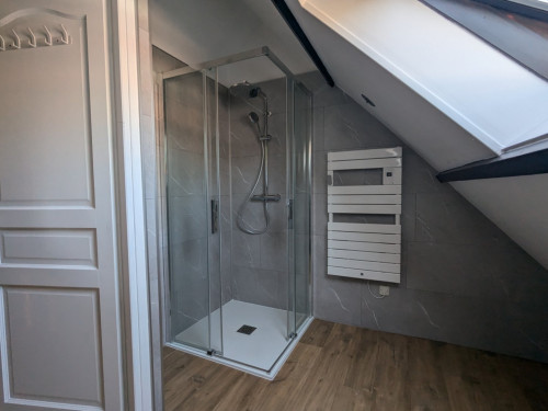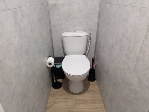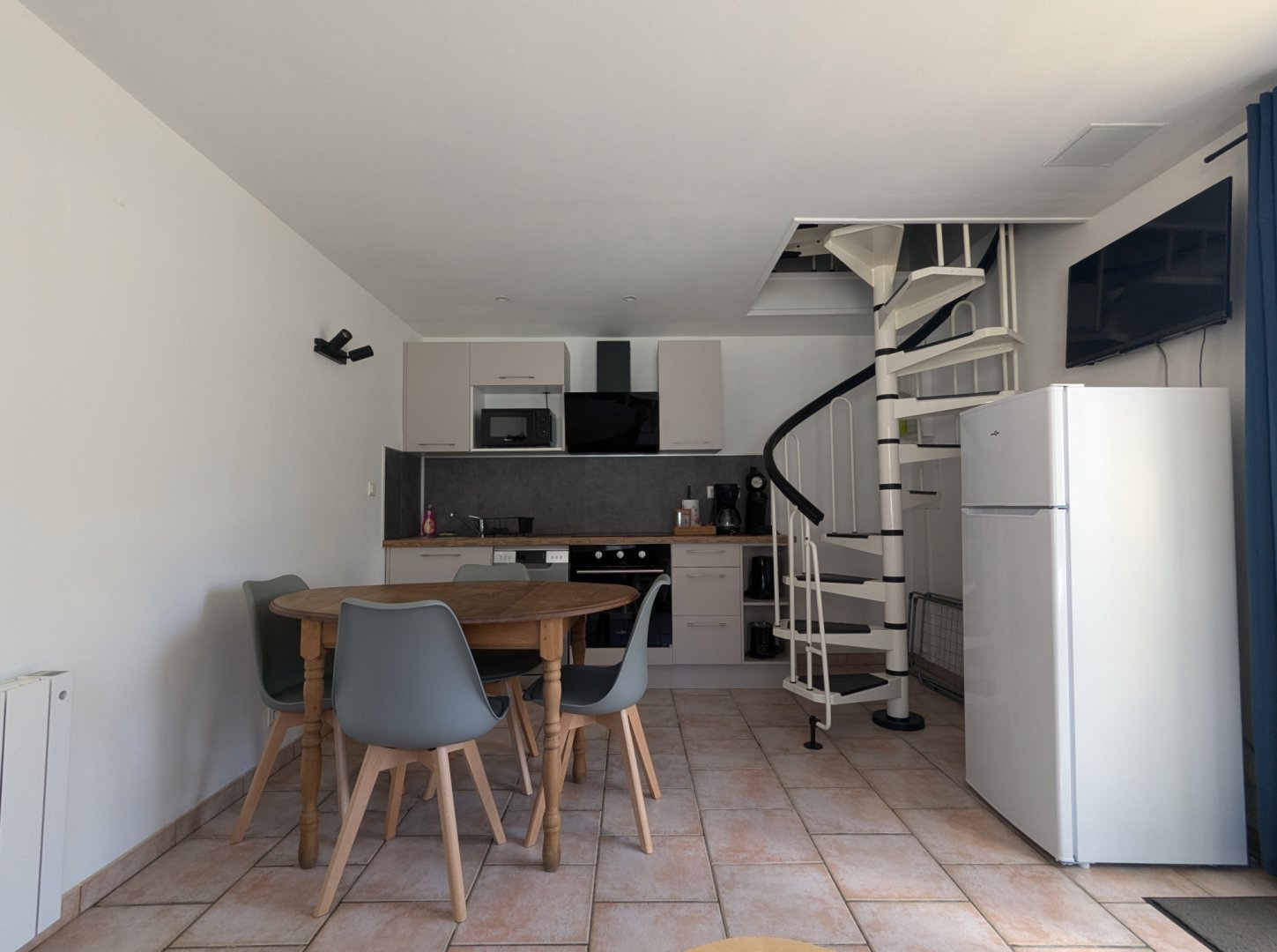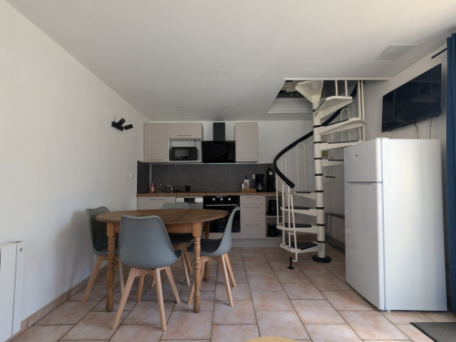 Au rez-de-chaussée : une cuisine équipée (réfrigérateur, lave-vaisselle, four, plaque vitrocéramique, cafetière électrique avec dosette et filtre, bouilloire, grille pain, micro-ondes, vaisselle, lave vaisselle), une salle de bain avec grande douche 90 x90, toilette séparé, un canapé lit pouvant accueillir 2 personnes supplémentaires, un coin salle à manger et un coin salon avec une TV écran plat. Chauffage : radiateur électrique.