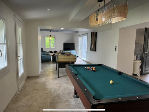 Boulodrome, billard, baby-foot, salle de cinéma, piscine 8x4m clôturée, 9 chambres avec salle d’eau incluse, 6 WC indépendants et beaucoup d’espace dans le parc arboré sont parmi les nombreux éléments de confort du Domaine Fida, dont les bâtiments (corps de ferme et grange) ont été entièrement réaménagés.