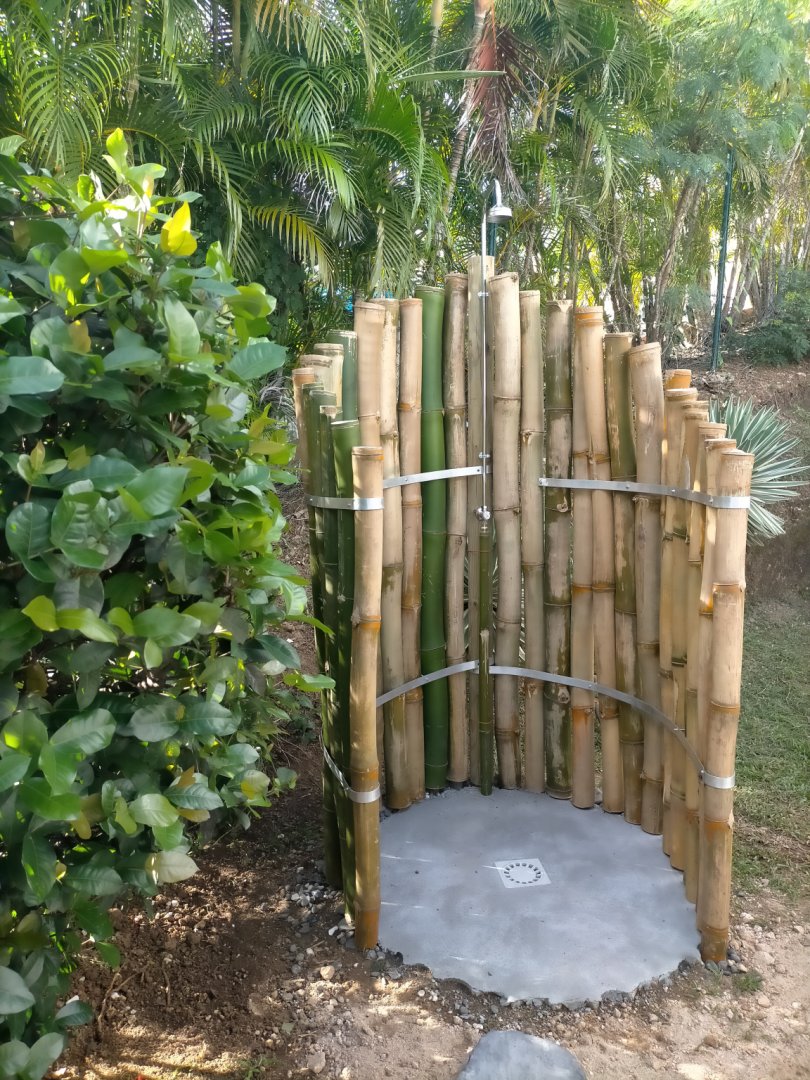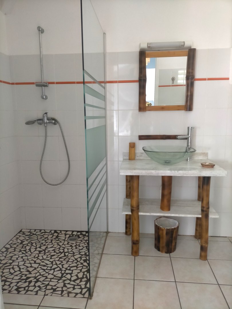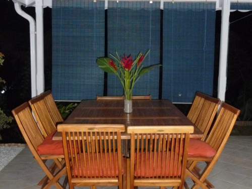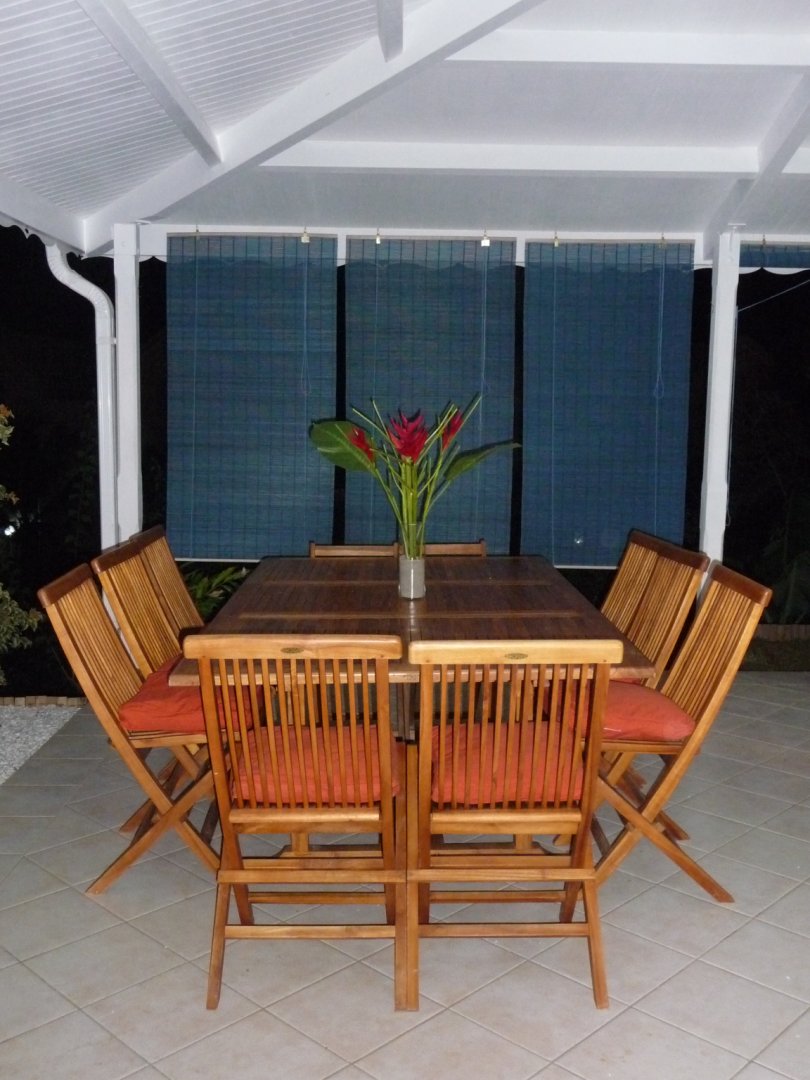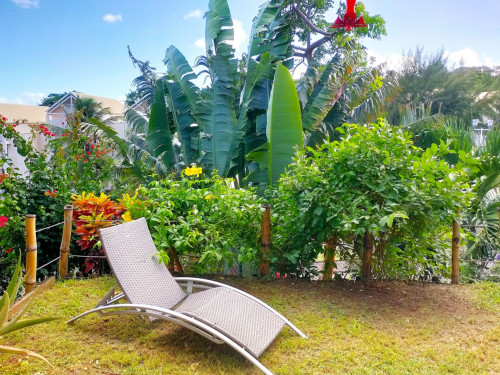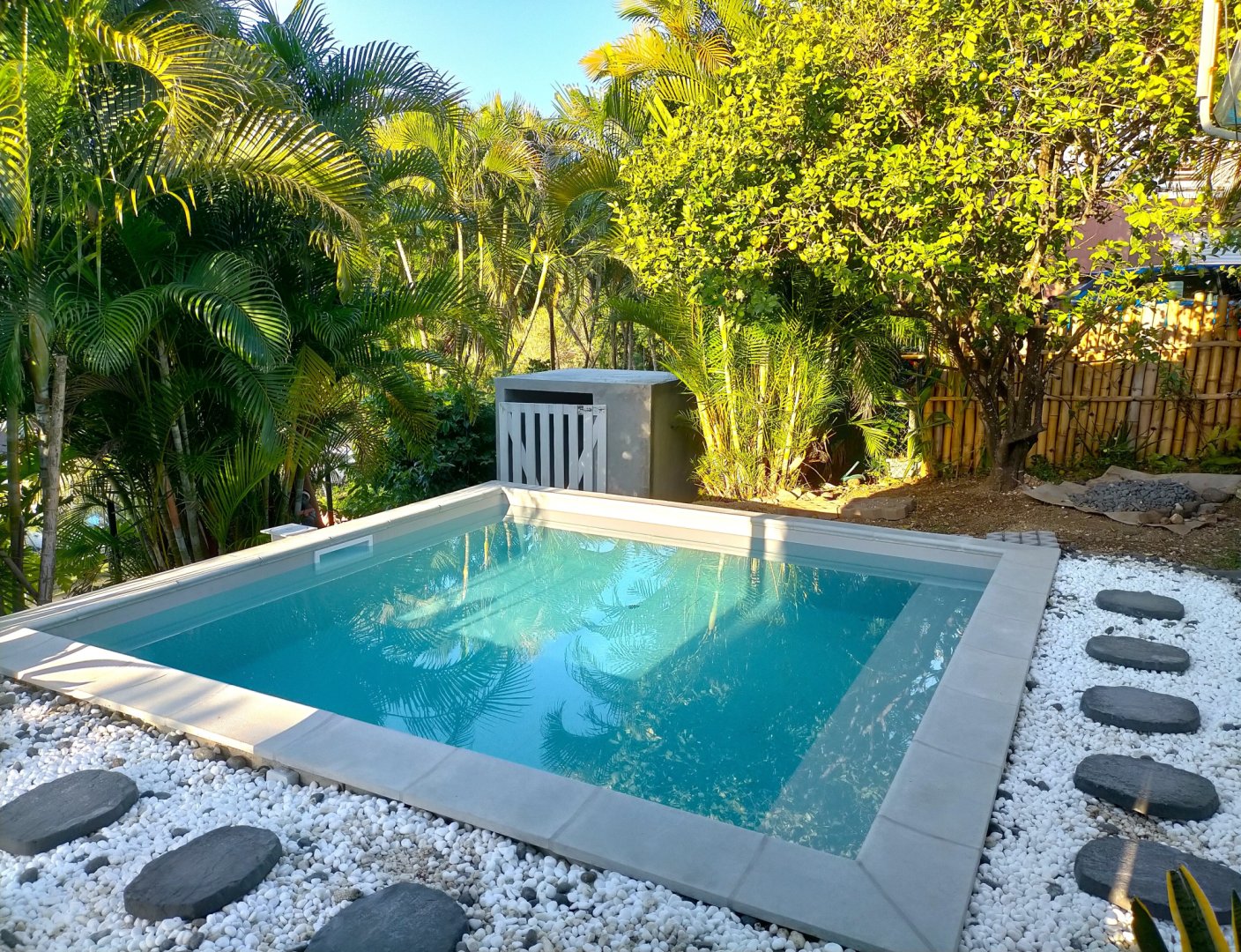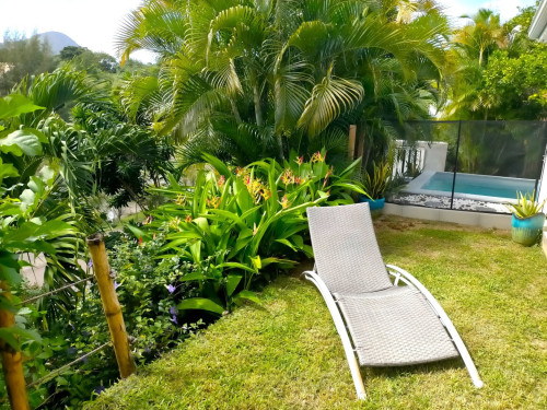 L'extérieur est le lieu convivial de regroupement et de loisirs, agréablement ventilé par les Alizés : terrasse couverte, piscine sécurisée 3,80 x 3,80 m, jardin fleuri et arboré, parking privé 2 voitures
