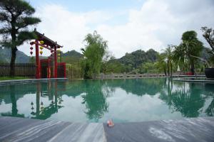 Offrant une vue sur la ville, l’établissement Happy Tam Coc Ecolodge se situe à Ninh Binh. Il propose un restaurant, une cuisine commune, un snack-bar, un jardin, une piscine extérieure et une terrasse. La connexion Wi-Fi et le parking privé sont tous deux accessibles gratuitement.