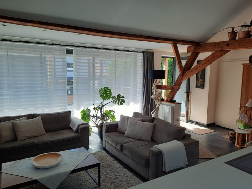 Gîte de 115 m² tout en lumière pouvant accueillir jusqu'à 6 personnes. Il est composé d'une grande pièce de vie pleine de charme, de 3 chambres doubles, 2 salles d'eau, 1 grande terrasse, une cour fermé avec des parkings, des fleurs, du calme, du repos, du bien être.