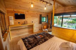Ce chalet avec climatisation comporte 1 chambre, une télévision à écran plat, un coin repas, ainsi qu’une cuisine avec un réfrigérateur et un four. Des serviettes et du linge de lit sont mis à votre disposition.
