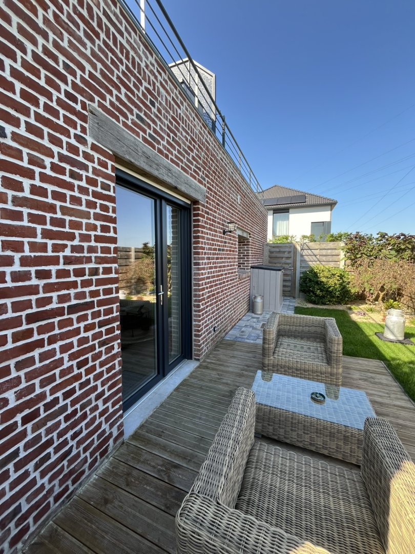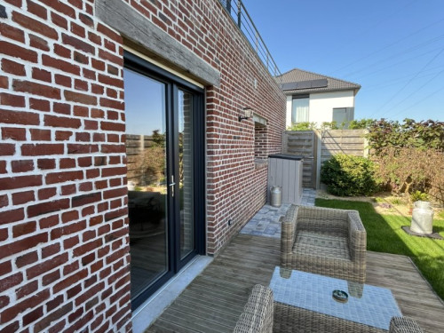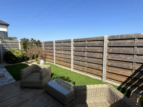 À l'extérieur, profitez d'un jardin privatif verdoyant, où une terrasse en bois de 30 m², entièrement clôturée, vous offre un espace intime pour vous détendre, prendre vos repas ou simplement profiter de la tranquillité des lieux.
