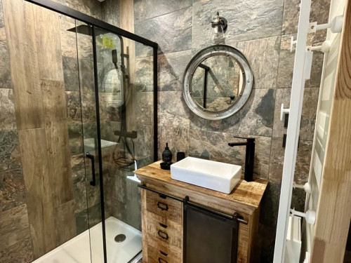 La salle de bain spacieuse, avec sa douche à l'italienne, invite à la détente après une journée de découvertes. Pour plus de commodité, un parking privé est mis à votre disposition, vous garantissant une arrivée et un départ en toute simplicité.