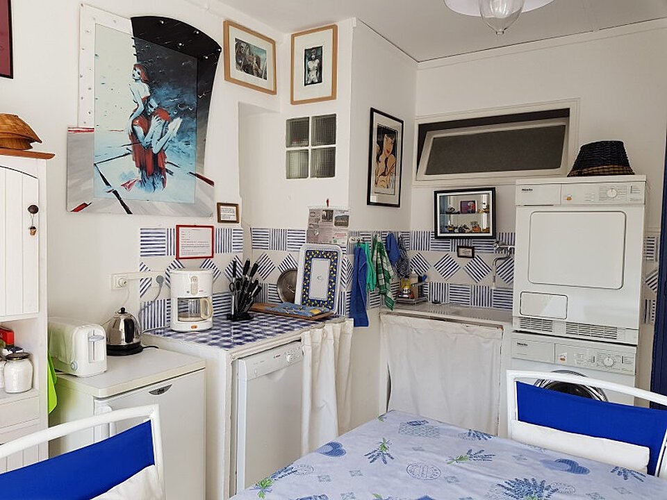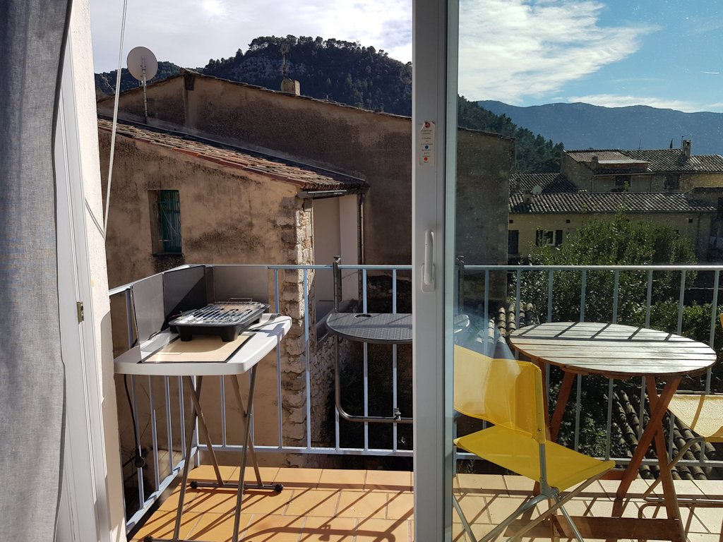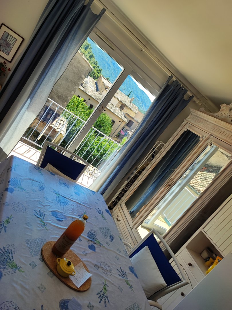La cuisine ou pièce à vivre est très lumineuse et s'ouvre sur le jardin. Du balcon une très belle vue sur le Saint Julien.