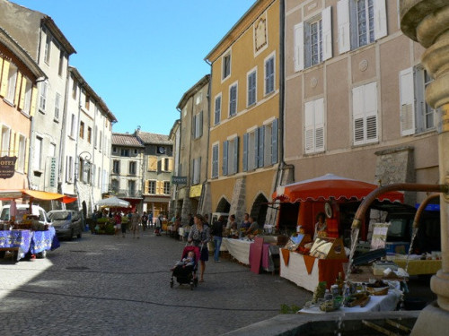 La maison est située au cœur du village à proximité de la Place du Marché "des Arcades".