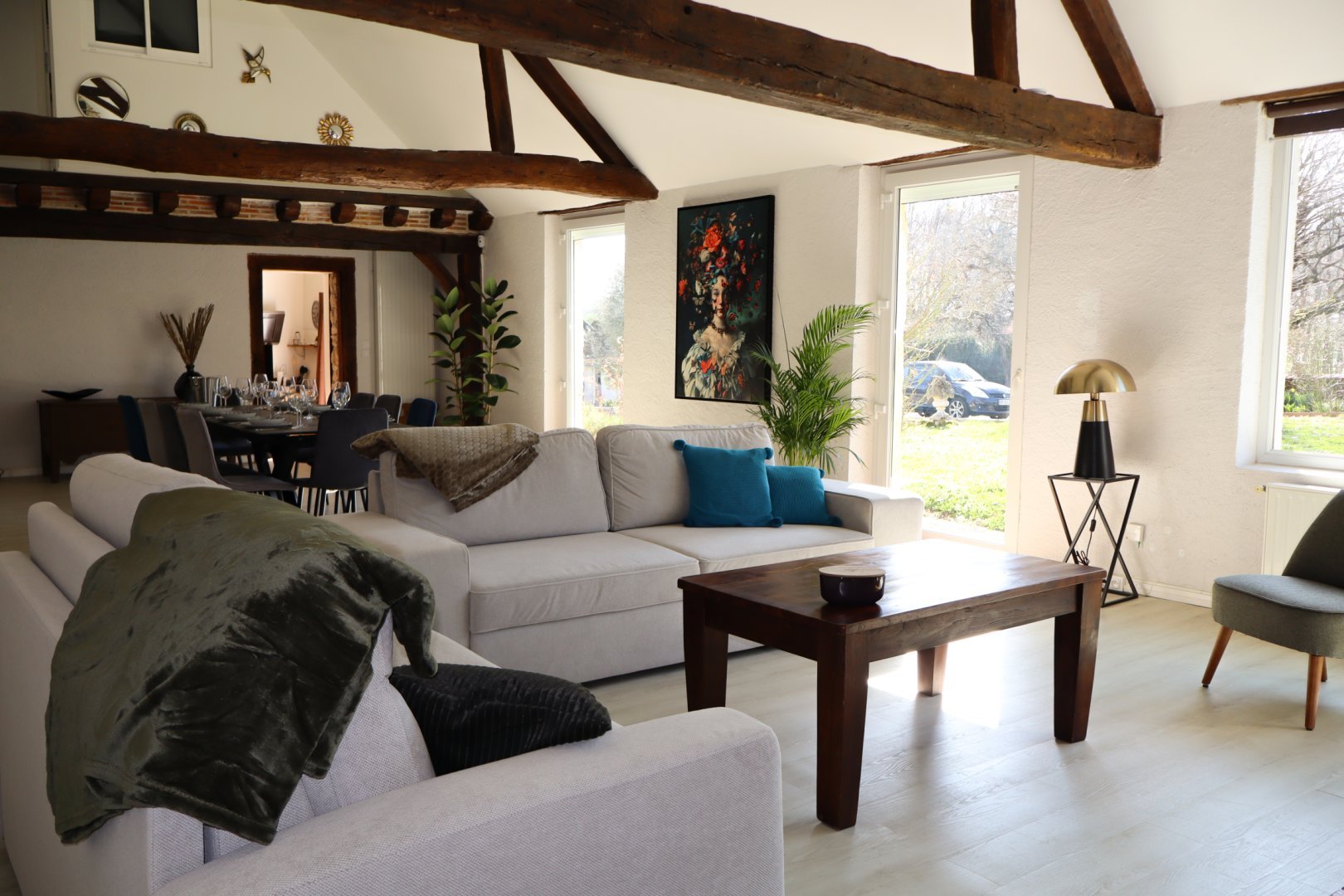 Salon chaleureux avec 2 canapés, télévision, enceinte Bluetooth, connexion Wifi, & jeu de fléchettes. Un lave-linge est à votre disposition dans le logement. Lessive fournie.