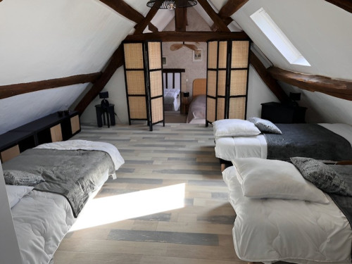 5 chambres (4 lits en 160x200 cm et 4 lits en 90x190 cm) et 3 salles de bain. Une des chambres à l'étage est semi-ouverte sur le dortoir (paravents présents si besoin).