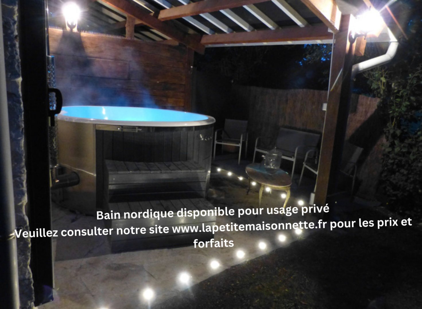 Un bain nordique est aussi disponible pour usage privé, sur demande.Veuillez nous contacter pour forfaits d'utilisation et prix.
