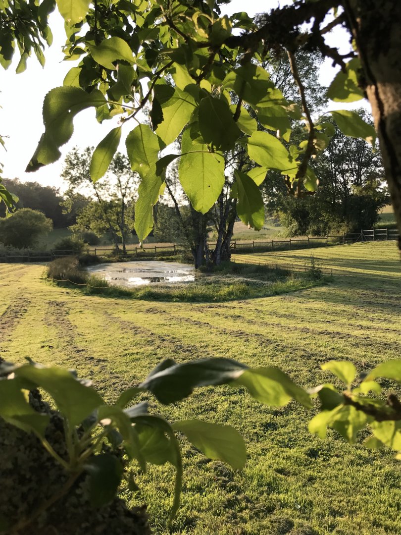 A la belle saison, vous profitez d'une grande terrasse lumineuse donnant sur le parc, avec ses arbres fruitiers et sa mare, et vous offrant un cadre particulièrement bucolique et reposant pour des vacances inoubliables.