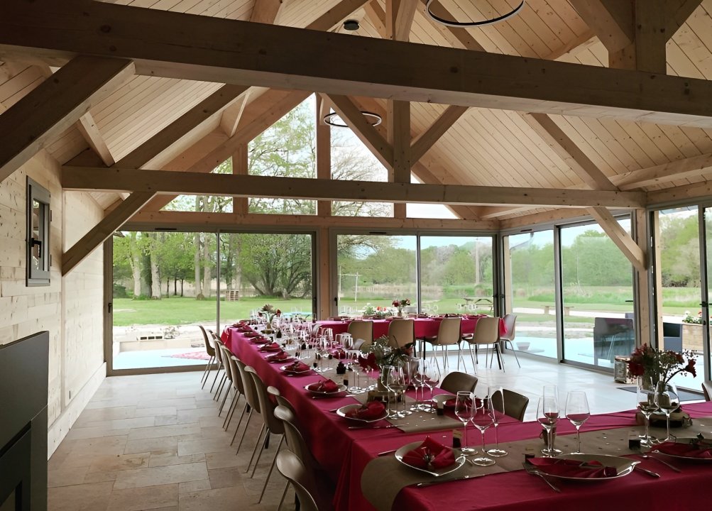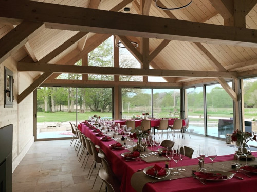 Au cœur d'un Domaine de 8 hectares, nous proposons une salle de réception de caractère pour vos événements. Que ce soit pour un mariage, une réunion de famille, un séminaire d'entreprise ou toute autre célébration, notre salle offre un cadre exceptionnel.