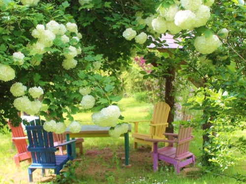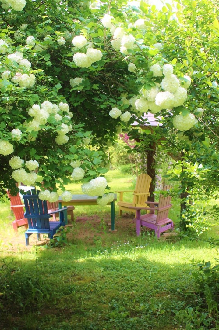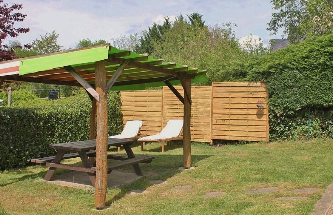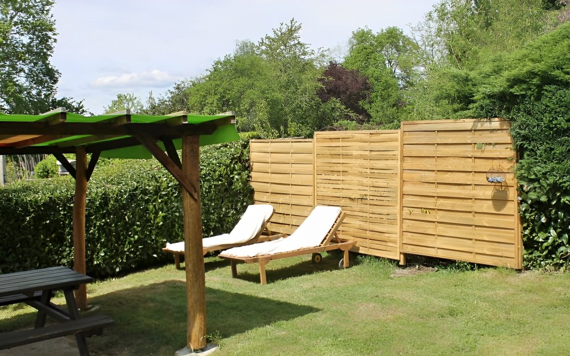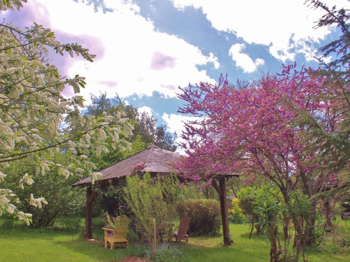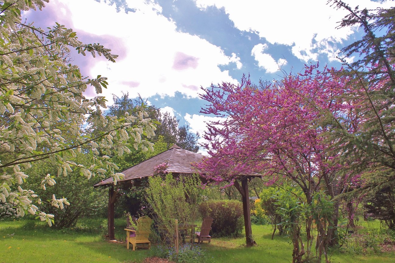 Une tonnelle se dresse au milieu des arbres pour lire ou déjeuner.