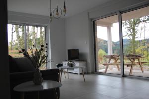 Disposant d’une terrasse et offrant une vue sur la montagne, cette maison de vacances comprend 2 chambres, un salon, une télévision à écran plat, une cuisine équipée avec un réfrigérateur et un lave-vaisselle, ainsi que 1 salle de bains avec une douche. Des serviettes et du linge de lit sont mis à votre disposition.